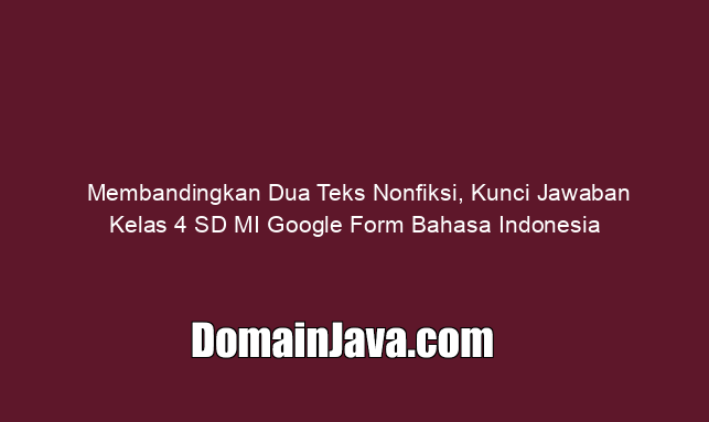 Seluruh konten dan artikel yang dipublikasikan di DomainJava.com disediakan semata-mata untuk tujuan informasi dan edukasi. Kami berupaya menyajikan informasi yang akurat, relevan, dan bermanfaat, namun tidak dimaksudkan untuk melanggar hukum, kebijakan, maupun pedoman dari pihak mana pun. Segala bentuk penggunaan informasi yang terdapat dalam artikel Membandingkan Dua Teks Nonfiksi, Kunci Jawaban Kelas 4 SD MI Google Form Bahasa Indonesia sepenuhnya menjadi tanggung jawab pembaca.